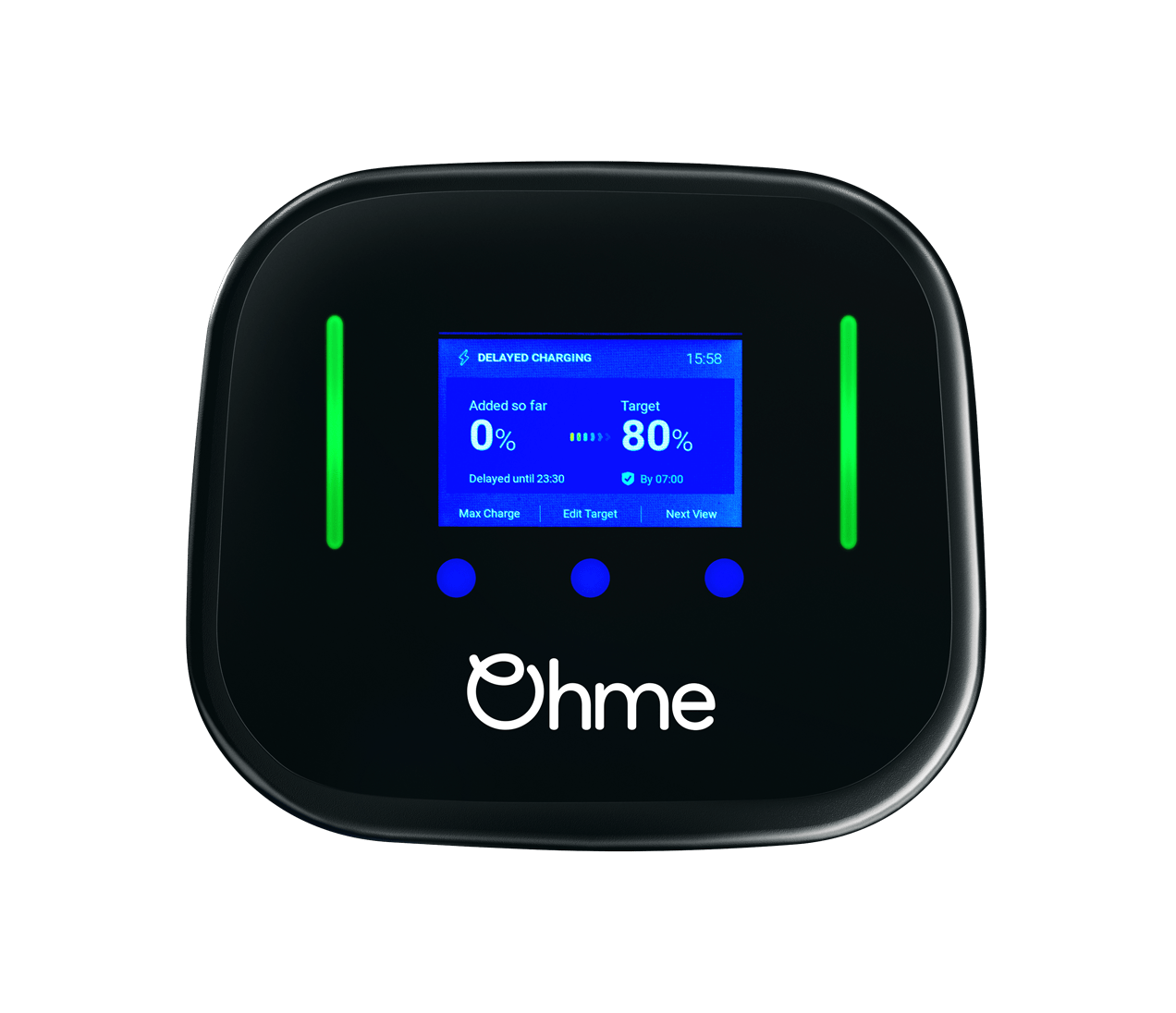 Durch die integrierte Verbindung zur Ohme App passt sich die Wallbox automatisch an variable Stromtarife an und lädt das Fahrzeug bevorzugt dann, wenn Strom bes